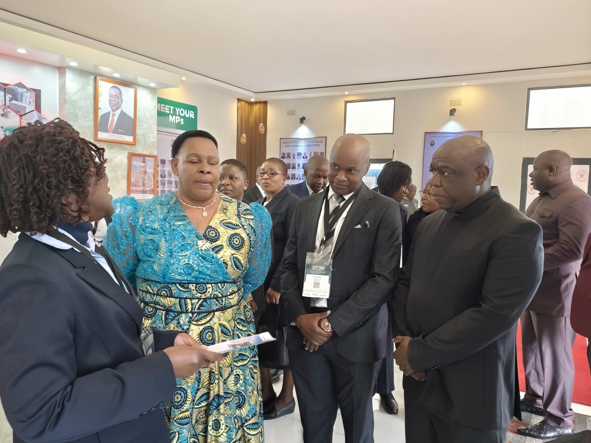 The speaker of Parliament, Jacob Mudenda, he is the secretary general of the governing party, ZANU PF, he was captured on his visit to the party stand, as well as president of the senate, Mable Chinomona, visiting the Parliament stand, staff of parliament hurriedly explaining the role of parliament to a long serving member of parliament.